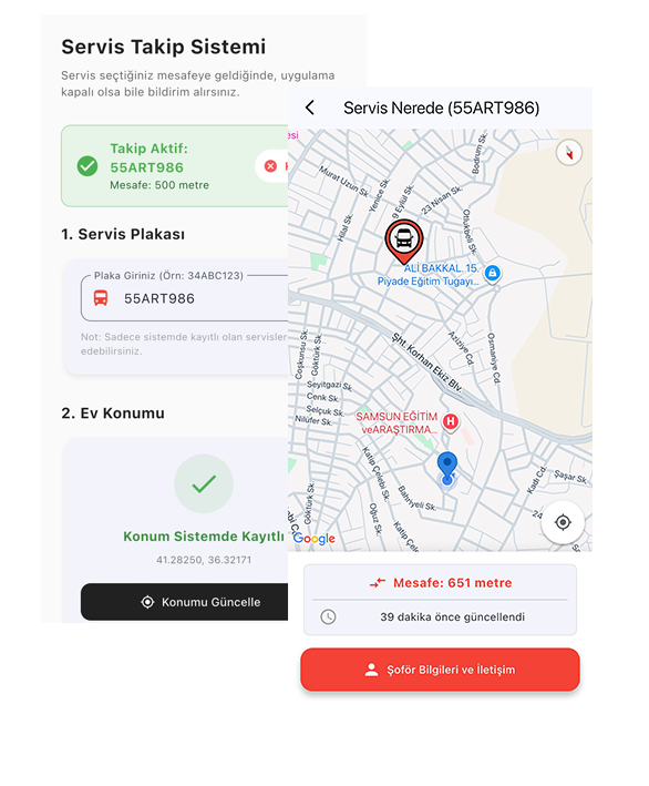 Servisim Nerede ile servisinizin yerini harita üzerinden anlık olarak takip edin.